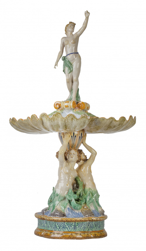 Home / SUBASTA DE JULIO / Centro de loza esmaltada.Trabajo italiano, S. XIX.Con r