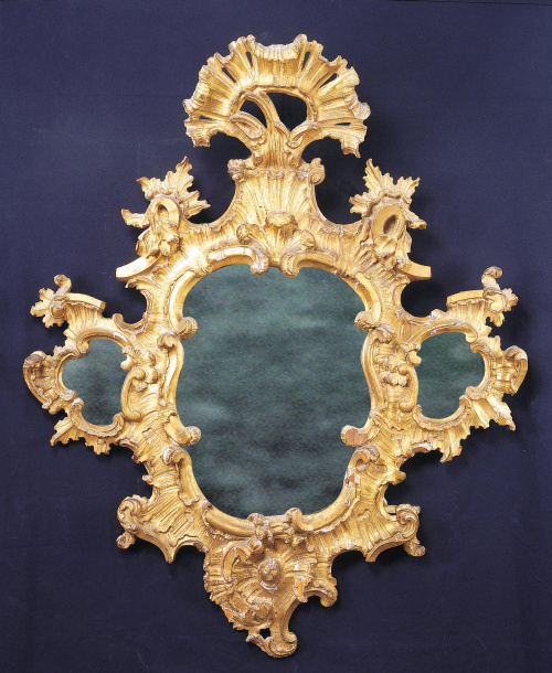 886. Importante cornucopia Fernando VI en madera tallada y dorada conservando su dorado y lunas originales.