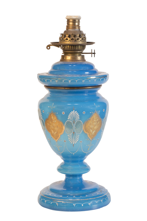 Quinqué de opalina azul.