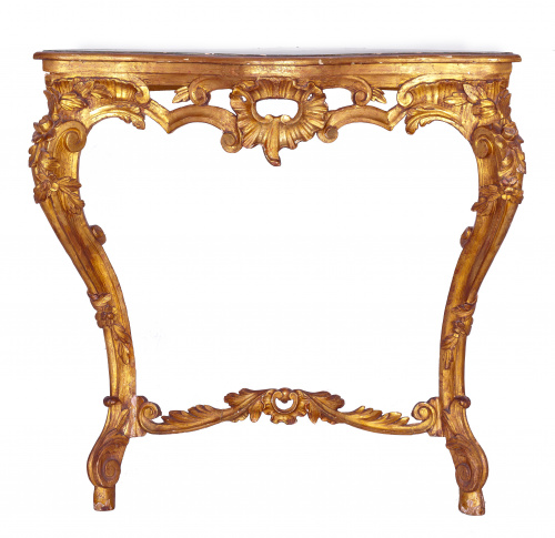 Home / SUBASTA DE JULIO / Consola esquinera de estilo rococó en madera tallada y dora