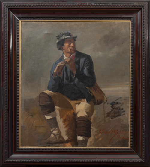 este tipo italiano, un Pastor sentado con su indumentaria