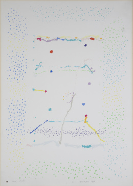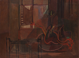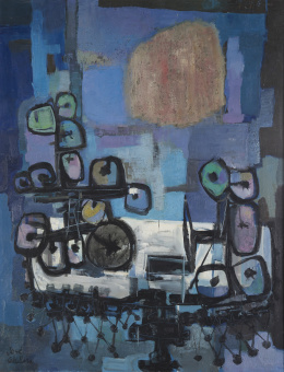 Objetos, firmado y fechado en 1949, es una de las últimas pinturas que realizó Torres antes de su fallecimiento y resume muy bien sus ideas sobre el retorno a un arte más simple y primitivo.