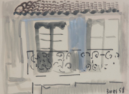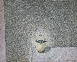 A diferencia de “Jarrito blanco con persiana” (ver lote 506), en esta obra ya no utiliza el recurso de acentuar las sombras para sugerir