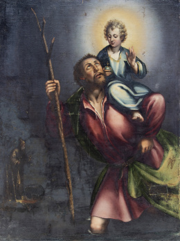 La obra que presentamos representa el episodio narrado en el Libro del Apocalipsis (12:7-9), que describe la lucha entre Satanás y San Miguel: “Entonces estalló la guerra en el cielo. Miguel y sus ángeles libraron la guerra contra el dragón…Así que el gran dragón fue derribado, esa serpiente de antaño…”. Sobre un fondo celestial, con una presencia monumental dominando la totalidad del lienzo, se alza la figura de San Miguel que desciende de los cielos para pisotear al demonio. Vestido como un líder romano, deslumbrante manto y poderosas alas. Destacamos el fino trabajo de los dibujos ornamentales realizados con brocatería que decoran el manto, y la vestimenta del arcángel. Propias del estilo de Santa Cruz es el tratamiento del rostro de mejillas ruborizadas, nariz con tabique nasal recto, boca pequeña, frente lisa y arco de las cejas ligeramente pronunciadas.