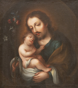 La obra que presentamos representa el episodio narrado en el Libro del Apocalipsis (12:7-9), que describe la lucha entre Satanás y San Miguel: “Entonces estalló la guerra en el cielo. Miguel y sus ángeles libraron la guerra contra el dragón…Así que el gran dragón fue derribado, esa serpiente de antaño…”. Sobre un fondo celestial, con una presencia monumental dominando la totalidad del lienzo, se alza la figura de San Miguel que desciende de los cielos para pisotear al demonio. Vestido como un líder romano, deslumbrante manto y poderosas alas. Destacamos el fino trabajo de los dibujos ornamentales realizados con brocatería que decoran el manto, y la vestimenta del arcángel. Propias del estilo de Santa Cruz es el tratamiento del rostro de mejillas ruborizadas, nariz con tabique nasal recto, boca pequeña, frente lisa y arco de las cejas ligeramente pronunciadas.