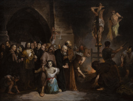 En 1911, Archer Milton Huntington, fundador de la Hispanic Society, le encargó los lienzos, Visión de España, para una nueva galería que tenía pensado construir en el ala oeste del edificio principal. Por este motivo, Sorolla se vio obligado a viajar por todas las regiones de España para captar su visión más personal. Nuestra obra pintada hacía 1914, nos situa a Sorolla en Sevilla donde disfrutó especialmente, se enamoró de la ciudad. Tras pasar dos meses en Madrid, el 3 de marzo viaja a la capital andaluza para pintar el panel que titula Los nazarenos y permanece hasta mayo, con algún viaje a Madrid para ver s su familia. En octubre vuelve para pintar el panel que titula El encierro, en la finca "La Tabladilla", a las afueras de la ciudad, terminándolo el 12 de diciembre y celebrando en Sevilla las Navidades con sus hijos Joaquín y Elena.