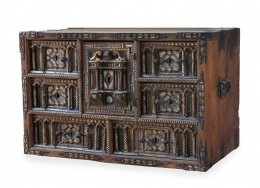 Presenta corona imperial en la parte superior y contorno decorado con la cadena del Toisón de Oro, con el cordero recostado sobre haces vegetales ornando la peana. El escudo no es muy diferente al de los monarcas anteriores pero introduce algún cambio en la distribución. En el primer registro de la mitad superior se encuentran los escudos de los reinos de Castilla y León, Aragón, Nápoles y Sicilia; mientras que en el segundo vemos los del archiducado de Austria, reino de Granada y ducado de Borgoña. En el registro inferior, en la parte izquierda aparecen los escudos del reino Navarra, condado de Flandes, condado del Tirol y en la derecha el de “Rey de Romanos”, título honorífico del antiguo reino de Jerusalén. En la base el condado de Borgoña y el ducado de Brabante.
