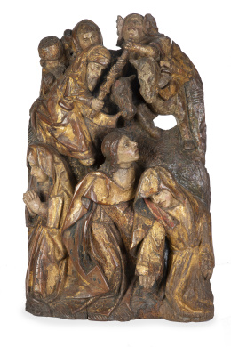 664. Escudo de España del Archiduque Carlos de Austria (1685 - 1740) como rey Carlos III de España.Madera de nogal tallada.h. 1705 - 1715.