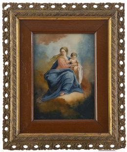 Virgen con niño, el cuadro original existe en el altar mayor de Padres capuchinos de Sevilla. Grabado. 27 x 28 cm.