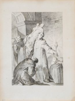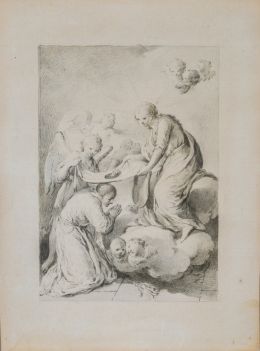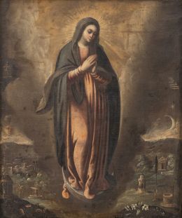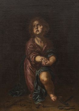 La obra que presentamos, conservada hasta ahora en una colección particular madrileña, destaca por su formato, dimensiones y carácter íntimo, lo que sugiere que fue concebida para un ámbito devocional privado o para una pequeña capilla conventual aún sin localizar. Su estilo pictórico refleja claramente la influencia de Eugenio Cajés, maestro bajo cuya tutela se formaron importantes artistas como Félix Castello, Jusepe Leonardo y Antonio Lanchares, quienes perpetuaron su técnica y proceso creativo.