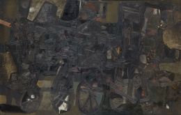 1963, año en que se realizó “Reina en la región vacía”, fue un momento decisivo en la obra de Rafael Canogar. El Informalismo, movimiento al que se adhirió junto con el resto de compañeros del grupo El Paso en 1957, perdió su fuerza. Lo que en sus comienzos fue un movimiento de rebeldía, una forma de expresar una protesta frente a la realidad, terminó siendo utilizado por muchos como un mero juego gestual y repetitivo. Para Canogar, por tanto, se hizo imprescindible la búsqueda de un nuevo lenguaje plástico que se acomodase mejor a su necesidad de denuncia y crítica social, cosa que consiguió abandonando el gesto e introduciendo elementos figurativos a sus obras.