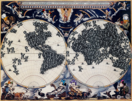 “Reina en la región vacía” es una de las primeras pinturas que realizó Canogar en este nuevo lenguaje plástico. La obra mezcla partes abstractas con figurativas. Las abstractas, sin renunciar al negro de su etapa anterior, son más luminosas y coloristas, introduciendo, por ejemplo, un intenso azul junto con blancos, negros y grises. Las figurativas hacen referencia a imágenes fotografías procedentes de periódicos o revistas a modo de posters pegados a una pared, en parte rotos y desgastados, junto con mensajes escritos a modo de grafiti. Como señaló José Vergara, “…para Canogar la realidad fotográfica no es esencialmente un ‘motivo’ para fijar la sensación plástica, es un hecho humano, un ‘modelo’ que pretende aparezca ante el espectador sin ocultarse su directo origen fotográfico y sin alterar su valor representativo: el accidente de tráfico, el rostro del astronauta, el esfuerzo deportivo, la elevación social de la mujer, los conflictos raciales, las amenazas bélicas.” (José Vergara, “Canogar”, cat.exp.Galería L’Attico, Roma, 1964).