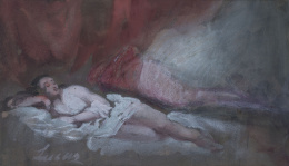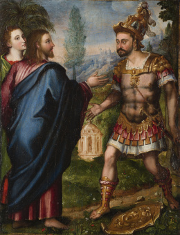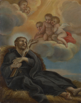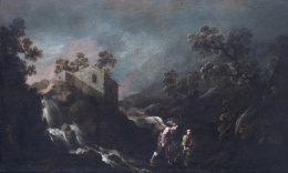 Óleo sobre lienzo. 74 x 99 cm. Firmado: “Matheo De Horozco fc.” Con etiqueta al dorso. En el capítulo 28 del libro del Génesis (versículos 11 a 19) se narra la aparición en sueños de Yahveh a Jacob que “soñó con una escalera apoyada en tierra, y cuya cima tocaba los cielos, y he aquí que los ángeles de Dios subían y bajaban por ella. Y vio que Yahveh estaba sobre ella, y que le dijo: «Yo soy Yahveh, el Dios de tu padre Abraham y el Dios de Isaac...”. El pasaje terminará con la bendición sobre él y toda su descendencia y la promesa de la tierra. El estilo de Mateo Orozco sigue siendo bastante desconocido aún hoy. Colaborador con su hermano Eugenio entre 1634 y 1652 en las pinturas murales de la Cartuja del Paular, donde siguen los pasos de Vicente Carducho, otras obras conocidas de su mano manifiestan la influencia naturalista algo ceremoniosa de Pedro Orrente con el eco lejano tanto de las composiciones populares de los Bassano como del uso de la luz caravaggiesca. Algo de esto se percibe en esta composición, cercana a la versión de Jacob y Raquel publicada en 1984 por Ismael Gutiérrez Pastor (Actas de las II Jornadas de Arte, CSIC, Madrid, págs. 379-383), aunque el tratamiento del paisaje se aproxime aquí más al mundo sevillano de Murillo e Iriarte, como ya planteó Pérez Sánchez en 1980 (”En el centenario de Orrente: Addenda a su catálogo”, en Archivo Español de Arte, LII, pág. 17, lám. 11). Especialmente interesante en esta obra es, no sólo su calidad pictórica, sino que es una de las pocas que se conservan firmadas.
