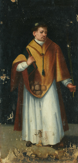 Temple sobre tabla. 82 x 70 cm. BIBLIOGRAFÍA: - Catálogo Monumental de Palencia, II. págs. 114 y 149 - Revista de Arte Goya, nº 99, Madrid, 1970 - Post, A History of Spanish Painting, vol. IX, pág. 800 y vol. X, pág. 427 - Diego Angulo Íñiguez, “Varios pintores de Palencia. El Maestro de Astorga”, Archivo Español del Arte, 1945, vol., 18, pág. 230, nº 70; Archivo Español del Arte, Julio de 1967, nº 159, vol. XI, pág. 206 y 207 - Mateo Gómez, Isabel, “Bartolomé de Castro: formación y estilo”, Boletín del Seminario de Estudios de Arte y Arqueología, Tomo 68, 2002, págs. 199-224 Destacado maestro, seguidor de Pedro Berruguete en cuanto a la monumentalidad de las figuras y su gusto por brocados y pedrerías, es patente también en su producción el carácter expresivo tan característico de Fernando Gallego así como la plasticidad en el tratamiento de los cabellos de Juan de Flandes. Según comentó Camón Aznar en la Summa Artis (vol. XXIV, p. 204), “lo que le importa a Castro es la proximidad del modelo al espectador para realzar su volumen de dura y varonil expresividad”. La tabla que presentamos, que formaría parte del banco del retablo de San Juan Bautista de Requena del Campo (Palencia), actualmente disperso, muestra a las claras esa pretensión. Sobre un fondo de brocado emerge la figura monumental de San Pedro, con su tratamiento formal característico que Isabel Mateo define a base de “ojos rasgados por el rabillo, narices grandes y rectas, abundantes cabelleras y desmañadas figuras” (pág. 205). Se adjunta una carta del profesor D. José Gudiol, del Instituto Amatller de Arte Hispánico, firmada y fechada el 13 de diciembre de 1964, donde escribe: “Se trata de una obra indudable del castellano Bartolomé del Castro”.