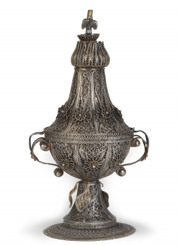 Esta datación también se ve refrendada por la decoración seleccionada, pues obedece al típico temario naturalista propio de los gustos de pleno barroco, en el que los motivos florales por su tratamiento técnico en valiente repujado y por su mismo diseño adquieren un carácter muy carnoso.